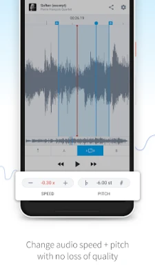 Идеален помощник за музиканти и учещи музика. Приложението ви помага да забавяте, зацикляте или променяте височината на музикални произведения, докато ги учите. Улеснете процеса на учене и свирене.