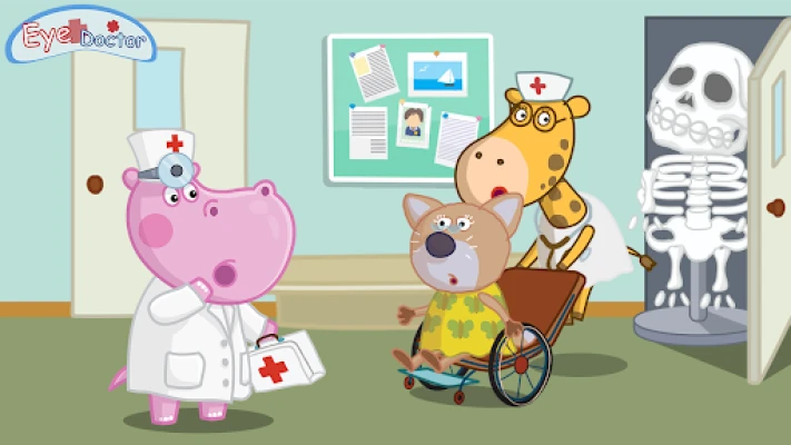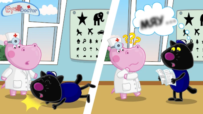 Като истински лекар, децата ще се сблъскат с разнообразни казуси и ще извършват различни процедури: от предписване на очила и промиване на очи, през тестове със зрителна карта и изследване за цветна слепота, до лечение на алергии и проверка на зрителна острота. Обгрижвайки своите малки пациенти и помагайки им да възвърнат здравото си зрение, децата не само развиват съчувствие и отговорност, но и интуитивно научават колко е важно да се грижат за собственото си здраве. "Докторски симулатор за момчета и момичета" предлага релаксиращо преживяване без ограничения във времето или точки, гарантирайки чисто забавление, сравнимо с гледането на любим анимационен филм. Погрижете се за зрението с радост, заедно с Hippo Kids Games!