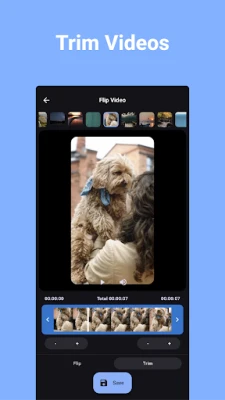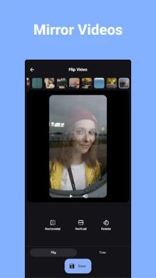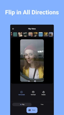 Flip Video е идеалният инструмент за бързо и лесно редактиране на видеа. Обръщайте ги хоризонтално или вертикално, ротирайте под всякакъв ъгъл и подрязвайте до желания размер. Насладете се на пакетна обработка и лесно споделяне за професионални резултати на Android.