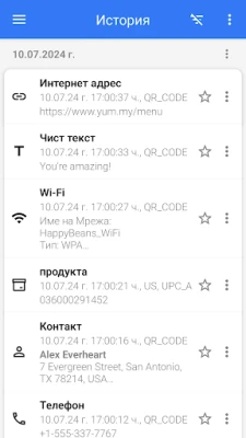 QR и Баркод Скенерът е проектиран да разчита всякакви формати – от текст и уеб адреси до ISBN, продуктови кодове, контактни данни, календарни събития, имейли, географски местоположения и Wi-Fi мрежи. След всяко сканиране, приложението интелигентно анализира съдържанието и ви представя само най-подходящите опции за действие. Използвайте го като своя личен асистент за пазаруване – сравнявайте цени на продукти в реално време, докато сте в магазина, или отключвайте ексклузивни отстъпки чрез сканиране на кодове за купони, спестявайки време и пари.