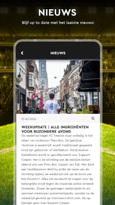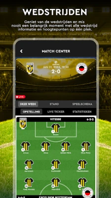 Бъдете винаги в центъра на футболната драма, без да пропускате нито един важен момент. Приложението на Vitesse ви осигурява достъп в реално време до резултати и детайлна статистика от всички срещи, позволявайки ви да следите всеки пас, гол и ключово събитие с прецизност. Преживейте отново най-вълнуващите моменти от мачовете чрез обстойни репортажи и богата видео колекция, включваща акценти, анализи и най-добрите изпълнения, които са писали историята на клуба.